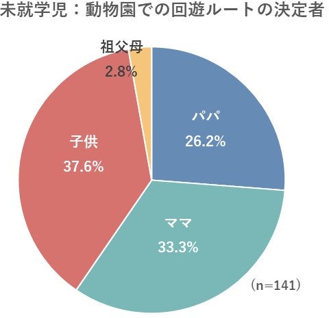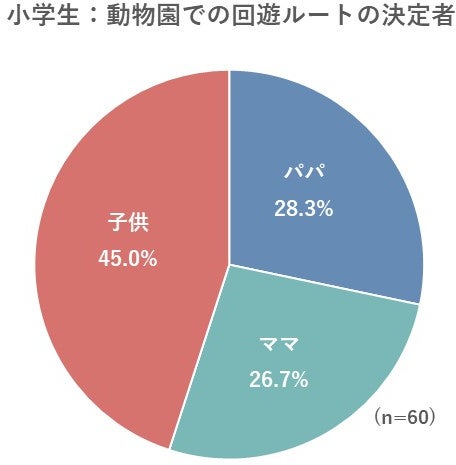 - 動物園の回遊ルートの決定者は概ね「パパ」「ママ」「子供」が3分