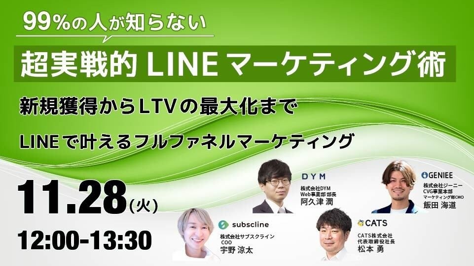 【株式会社DYM】【無料ウェビナー開催】【99%の人が知らない 超実践的 LINE マーケティング術】新規獲得から LTV の最大化までLINE で叶えるフルファネルマーケティング