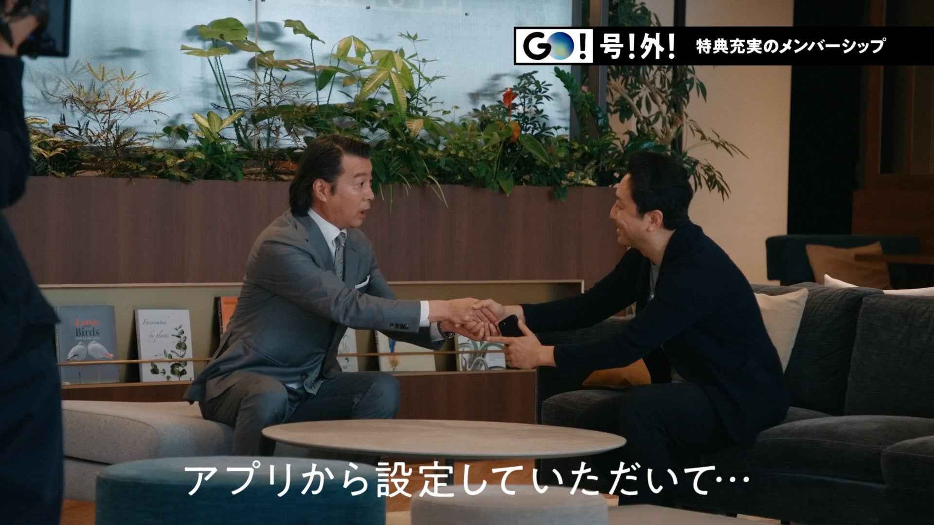 『GO』のステータス特典※がサファイアの加藤リポーターが「特別なお客様へという通知が来たんですが?」と迫り、会員制度についてインタビューします。握手で会員登録をすまそうとするお茶目な加藤リポーターにご注目ください。