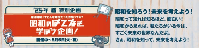 今年は昭和元年から数えてちょうど100年。今、改めて注目される「昭和」特有の文化が社会に与えた影響を現代の子どもたちに体感してもらい、社会がどのように発展、変化してきたか考え、学びながら楽しんでいただける企画となっております。