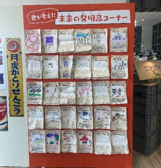 昭和にはたくさんのものが発明、発展してきました。さて未来にはどんなものが生まれ、どのように発展するでしょうか。お子様に記入用紙をお配りし、未来の発明品を考えてイラストを描いていただく体験型施策です。参加してくれたお子様には昭和企画ならではの駄菓子のプレゼントも行っております。