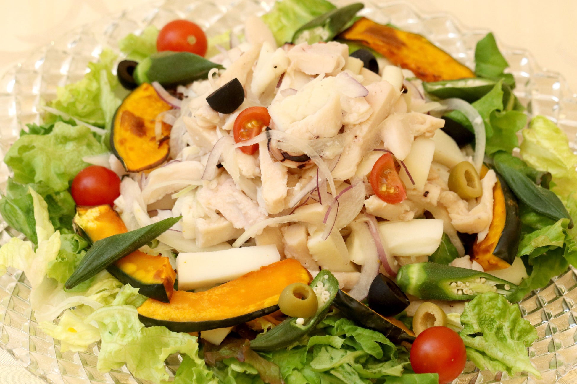 柔らか烏賊とチキンのサラダ仕立て