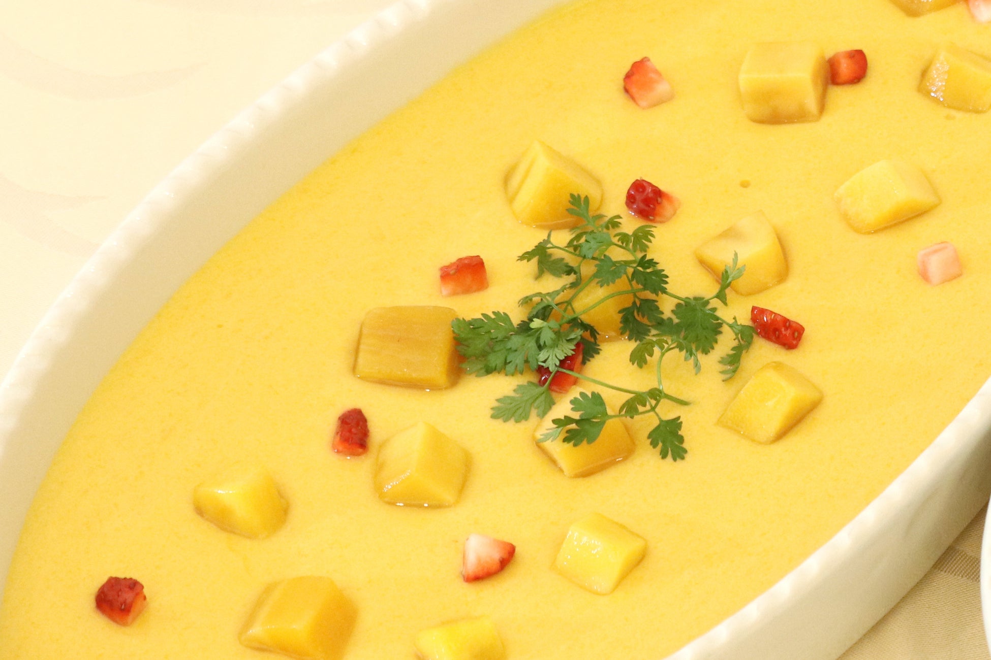 夏の定番、マンゴー好きにはたまらないマンゴープリン。ふるふる&なめらかな食感です。