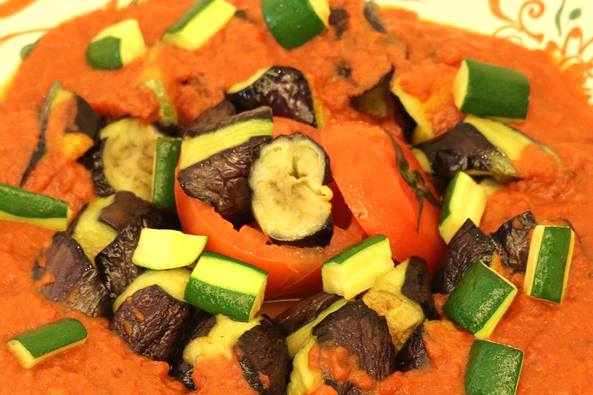 とろっとした揚げ茄子とズッキーニを旨みたっぷりの自家製和風トマトソースと合わせました。
