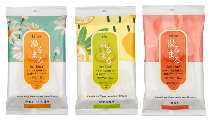 湯るまるはクラフト温泉を用いた様々な商品開発を行う㈱Le Furo独自の濃縮された温泉成分と温感成分が配合された「温泉を持ち運ぶ」新発想のボディーシートです。温泉を想起させる香りと温かさで宇宙飛行士に温泉のような安らぎの時間を提供できないかという想いから開発されました。