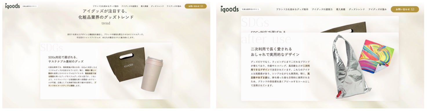 そこで、化粧品業界特有のグッズ制作における「季節ごとのキャンペーンに合わせたグッズを制作したい」「新商品の特徴を引き立てる、オリジナル販促グッズを検討したい」「ブランドの世界観を表現したものを作りたい」などの課題に対し、当社だからこそ提供できるノウハウがあるのではないかと考え、化粧品業界向け専門ページを公開する運びとなりました。