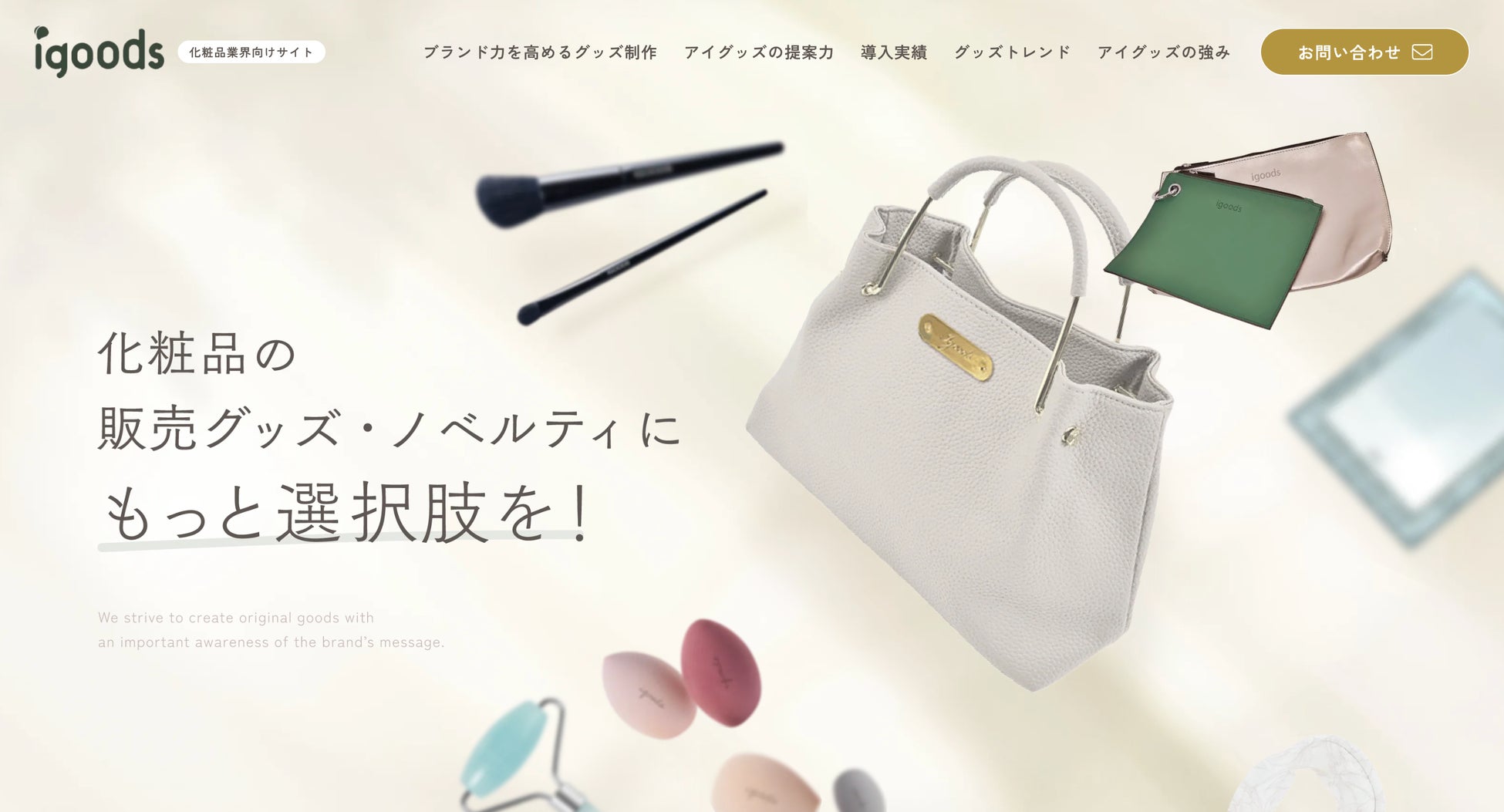 化粧品業界向けオリジナルグッズ・OEM制作アイディアページ:https://i-goods.co.jp/cosmetics/