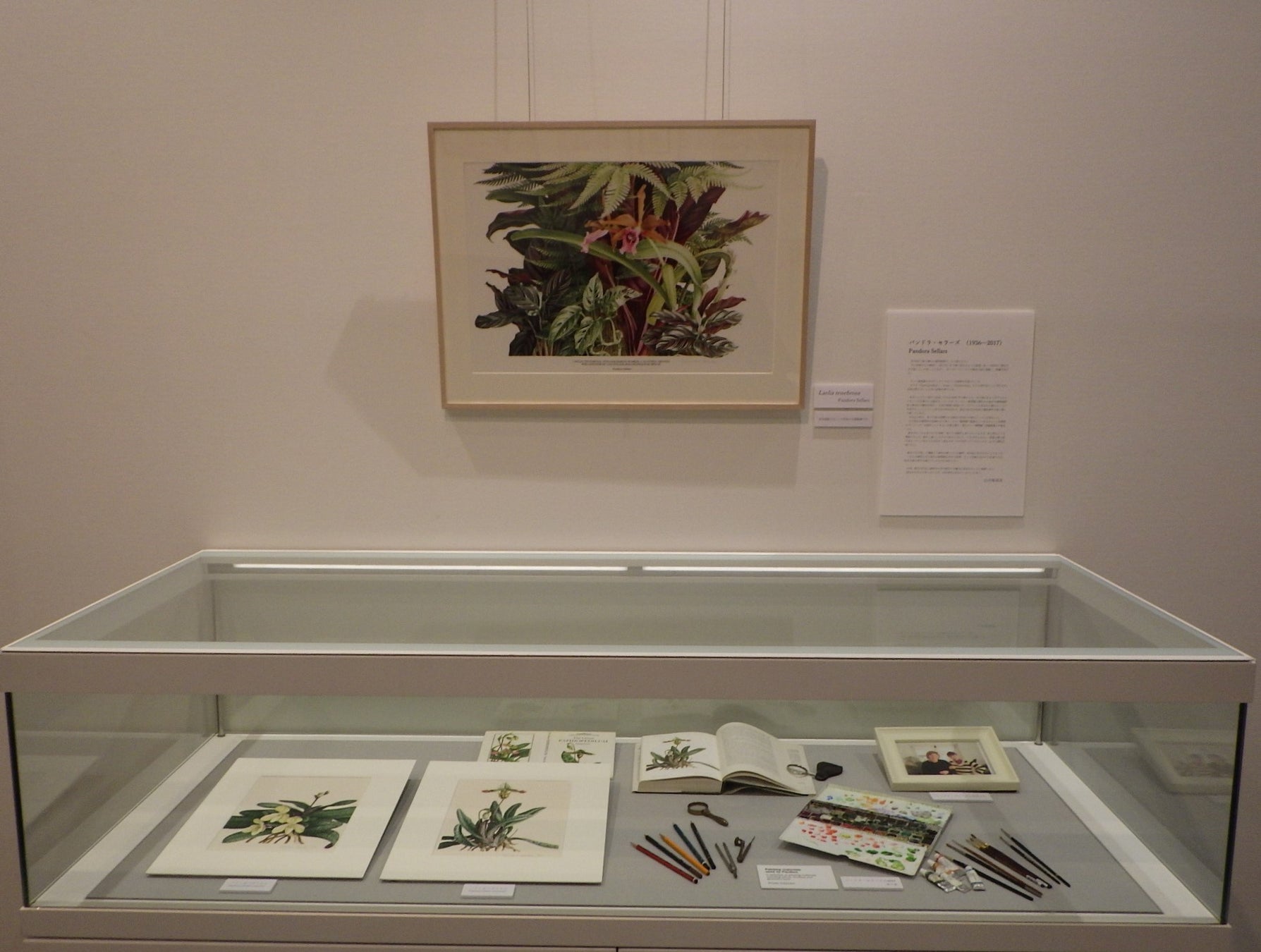 「植物画展」は英国キュー王立植物園公認植物画家の山中麻須美氏が講師をする「植物画教室」の作品を展示。万葉集に詠まれた草花をはじめ、山中氏が描いた「春日大社本社大杉」や、山中氏に師事し、ドラマ「らんまん」に植物画を書き下ろした米田薫氏による「スエコザサ」なども鑑賞できます。また20世紀で最も優れた植物画家の一人と称されたパンドラ・セラーズ氏の画材もご覧いただけます。