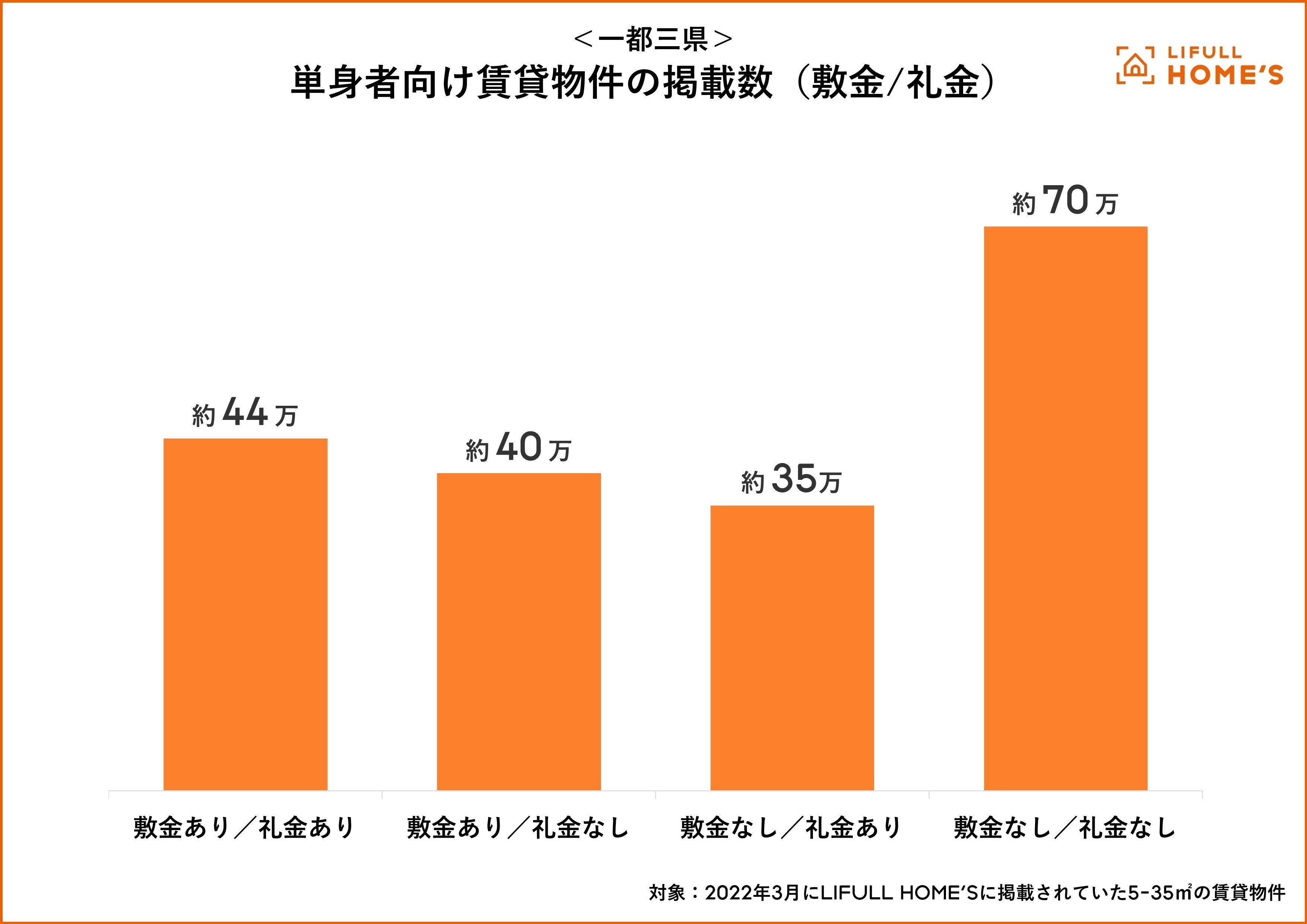一見、探し手にとって嬉しいデータに見えますが、敷金礼金の有無はあまり気にせずに探すことをオススメします。「初期費用が減るから得」という意味合いで、「敷金なし・礼金なし」は売り文句としては引きが強いですが、初期費用が掛からない代わりに、退去時にクリーニング代や清算金を支払うケースが増えてきているため、トータルのコストは大きくは変わらない可能性があります。今どうしても手持ちの現金が用意できない際は有効な選択ですが、そうではない場合、初期費用の有無を気にせずに探すことで、選べる物件の幅は広がると思います。