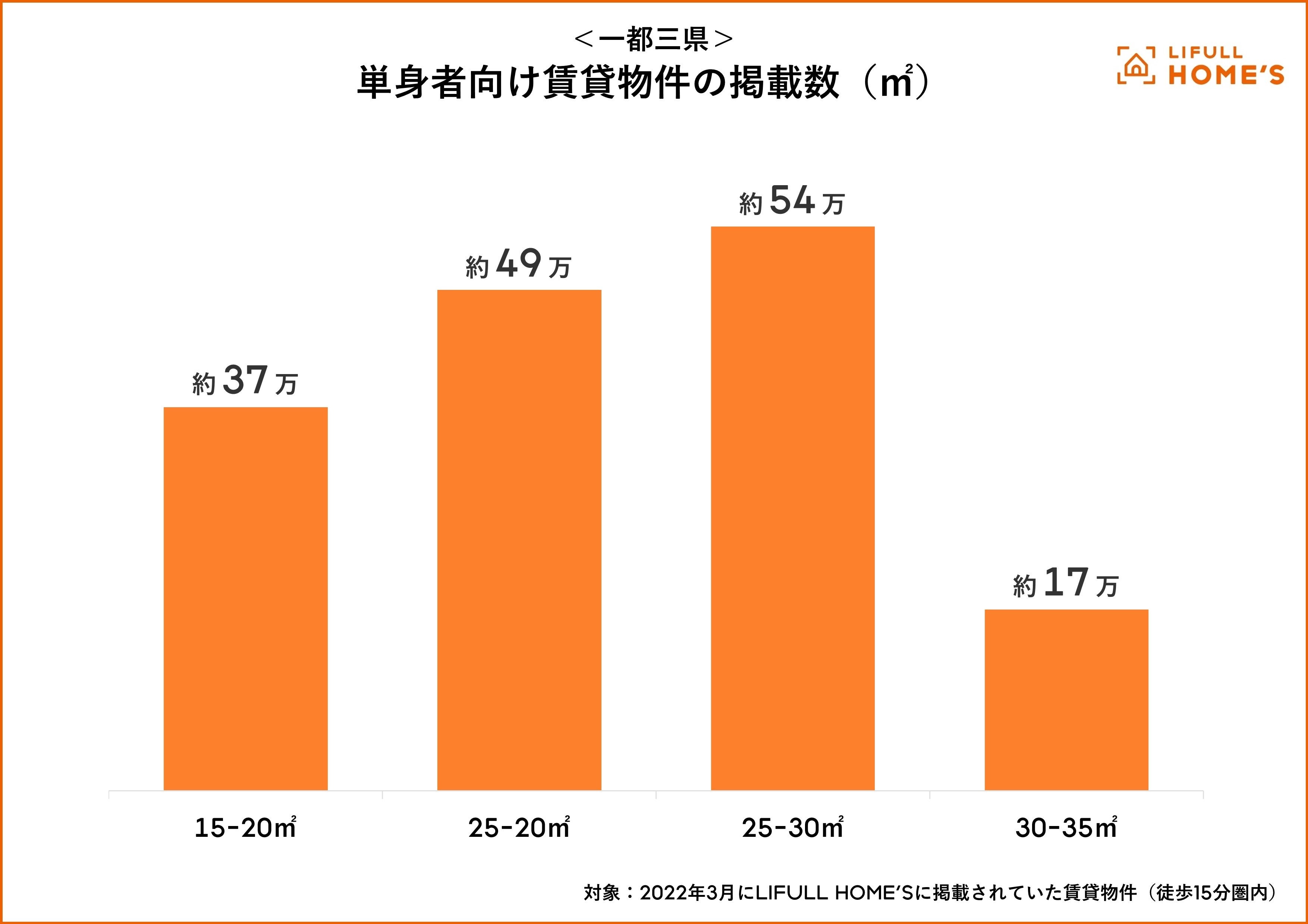 30㎡を超えると一気に掲載数が少なくなる!? 30㎡以下で探すと約8倍の掲載物件数に