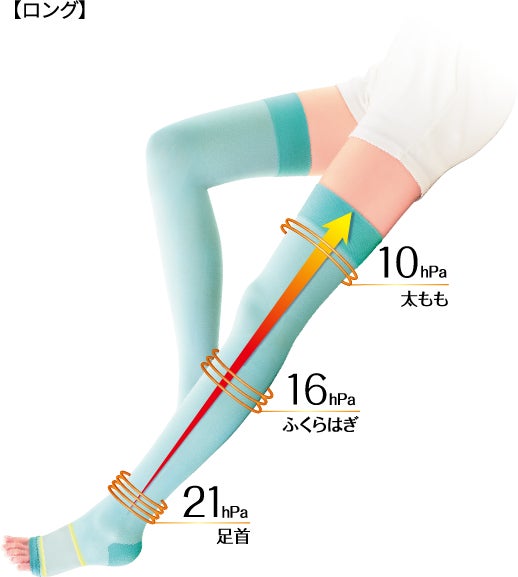 (足首21hPa、ふくらはぎ16hPa、太もも10hPa)