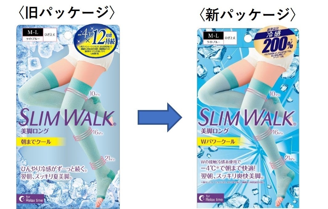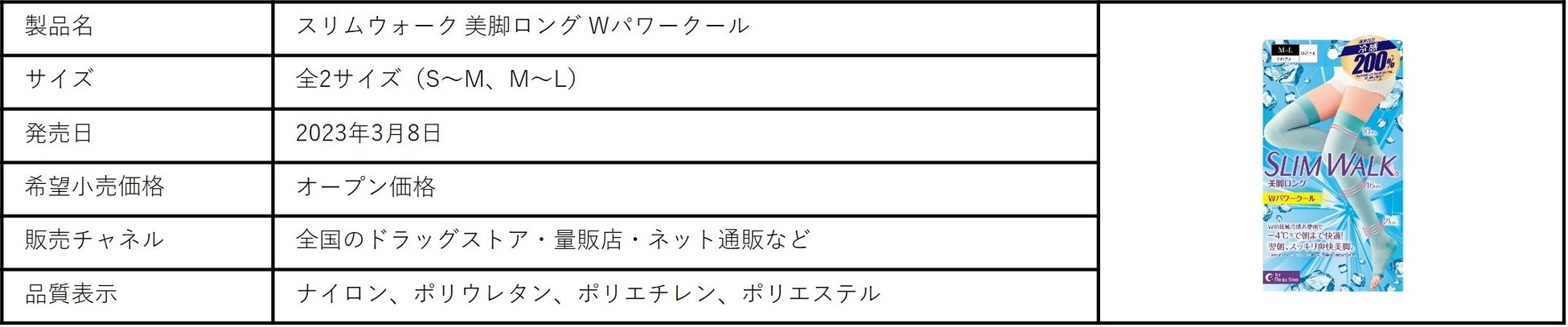 「スリムウォーク® 美脚ロング Wパワークール」今年もリニューアルして登場! 夏に向けて冷感200%※2で快適美脚ケア! 季節限定!Wパワーで-4℃※1の爽快美脚♪