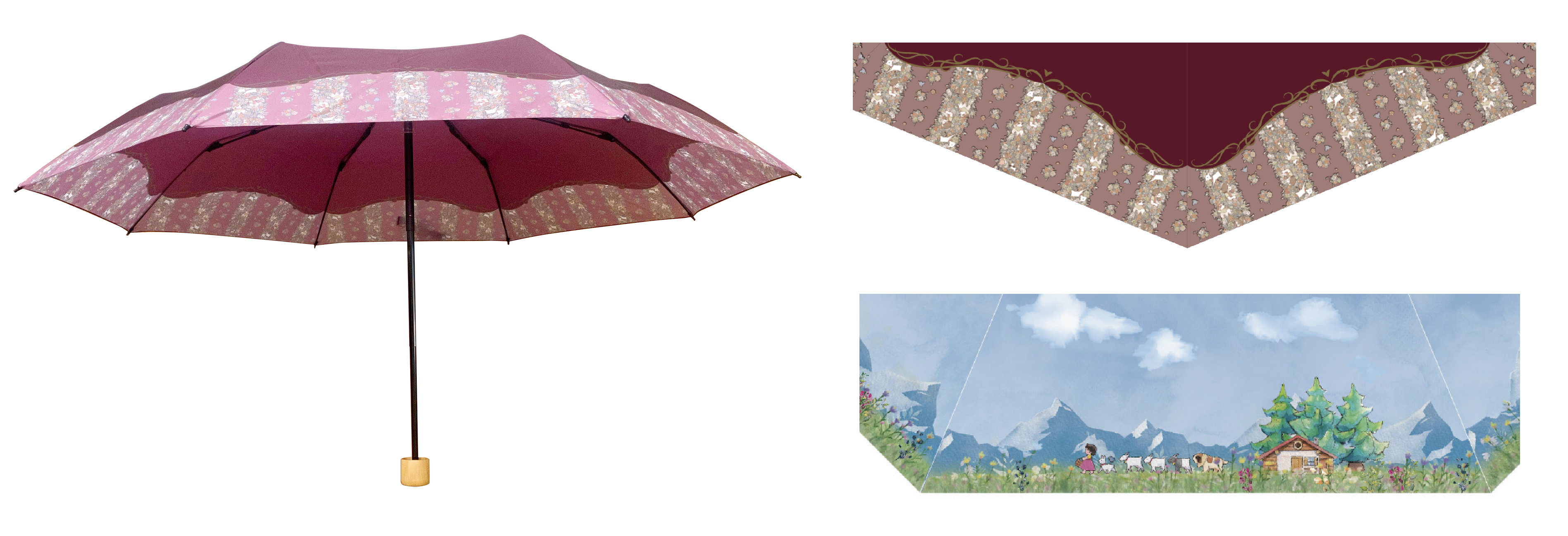 アルプスのハイジたちの世界が、かわいくデザインされた折りたたみ傘。雨の日はもちろん、晴れの日は日傘として使用できます。