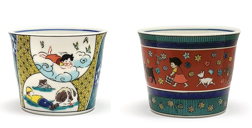 日本の伝統工芸品である色絵陶磁器「九谷焼」とハイジのコラボアイテム。力強く重厚で華やかな趣きが特徴の九谷焼の世界の中に、和風タッチの「ハイジ」たちがかわいらしく表現されています。