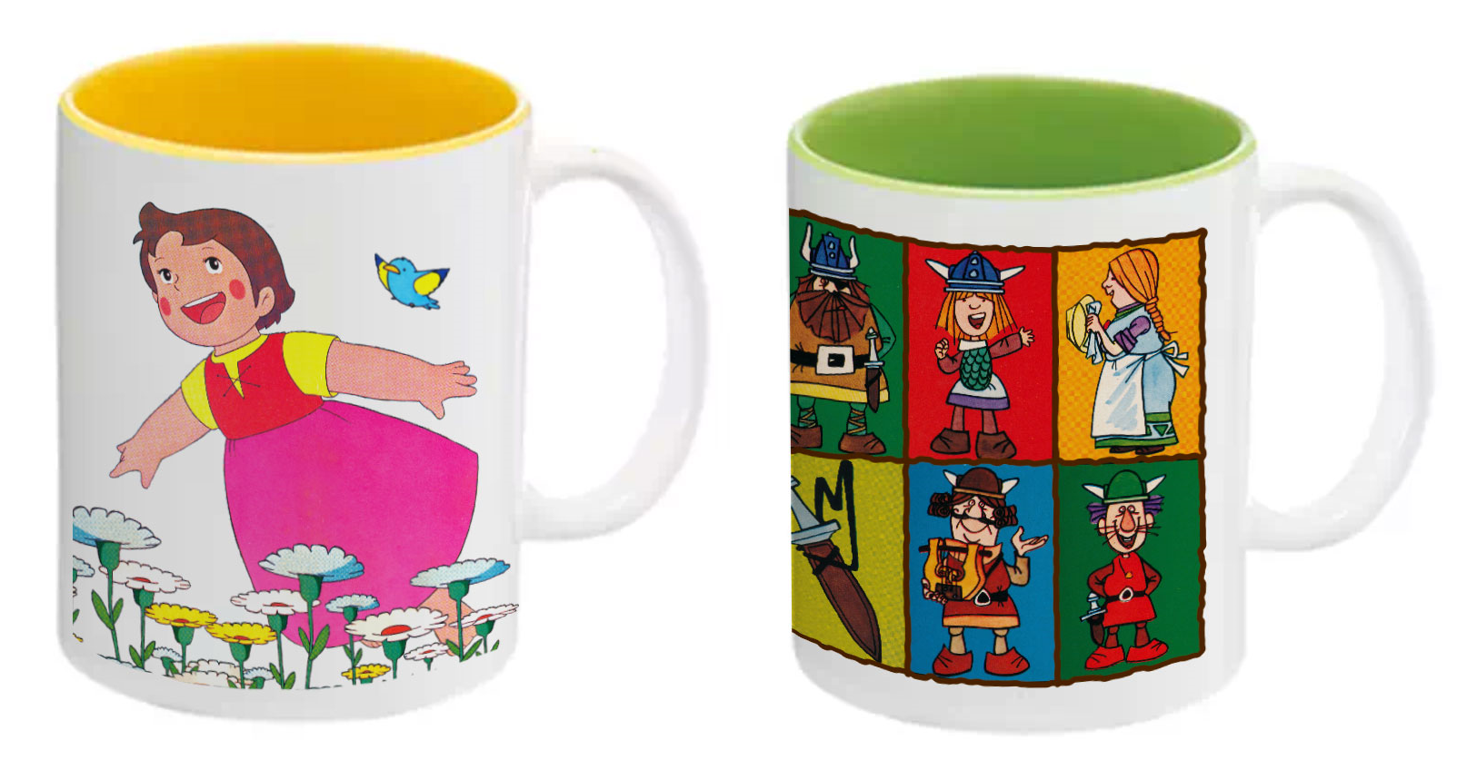 テレビ放映当時のイラストのカラーやタッチをそのままの空気感で再現しました。どこか懐かしいけど、そこが新しいレトロなハイジやビッケのイラスト入りマグカップです。