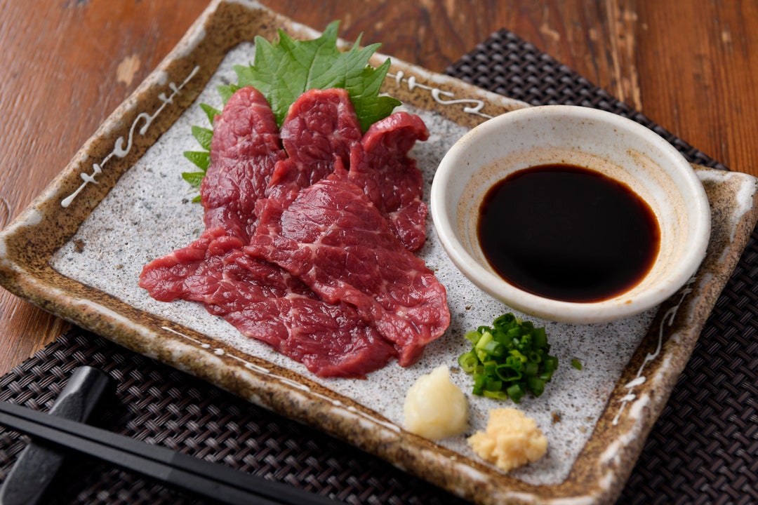 鮮度抜群!肉の甘さがとろけるような、なめらかな舌触りと濃厚な旨味がたまらない絶品の馬刺し。お酒が進みます。