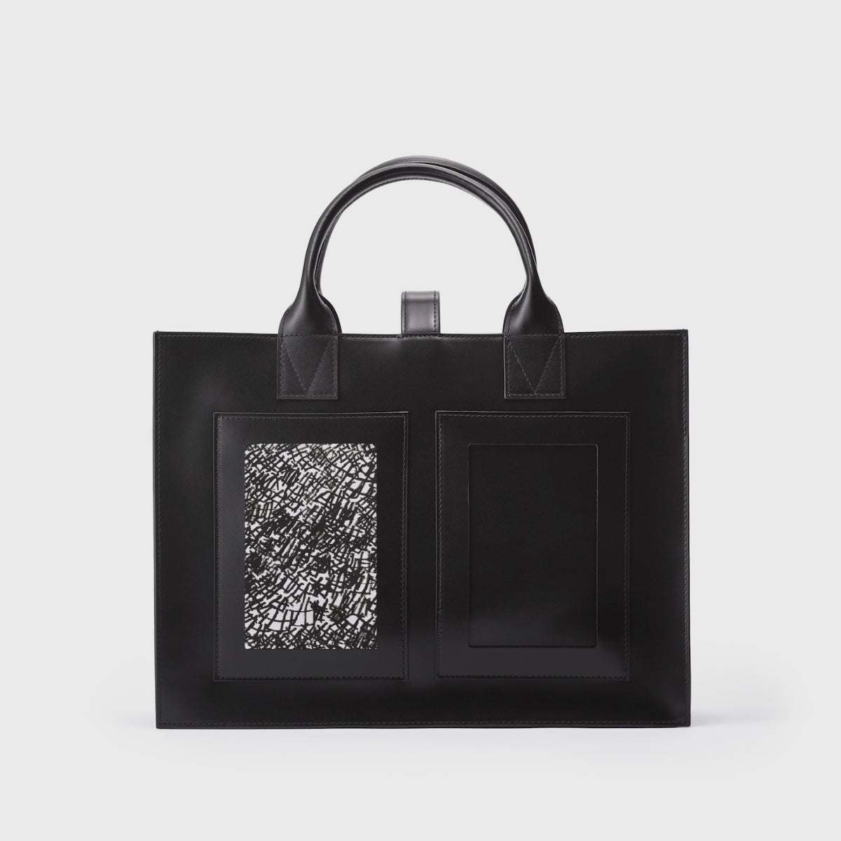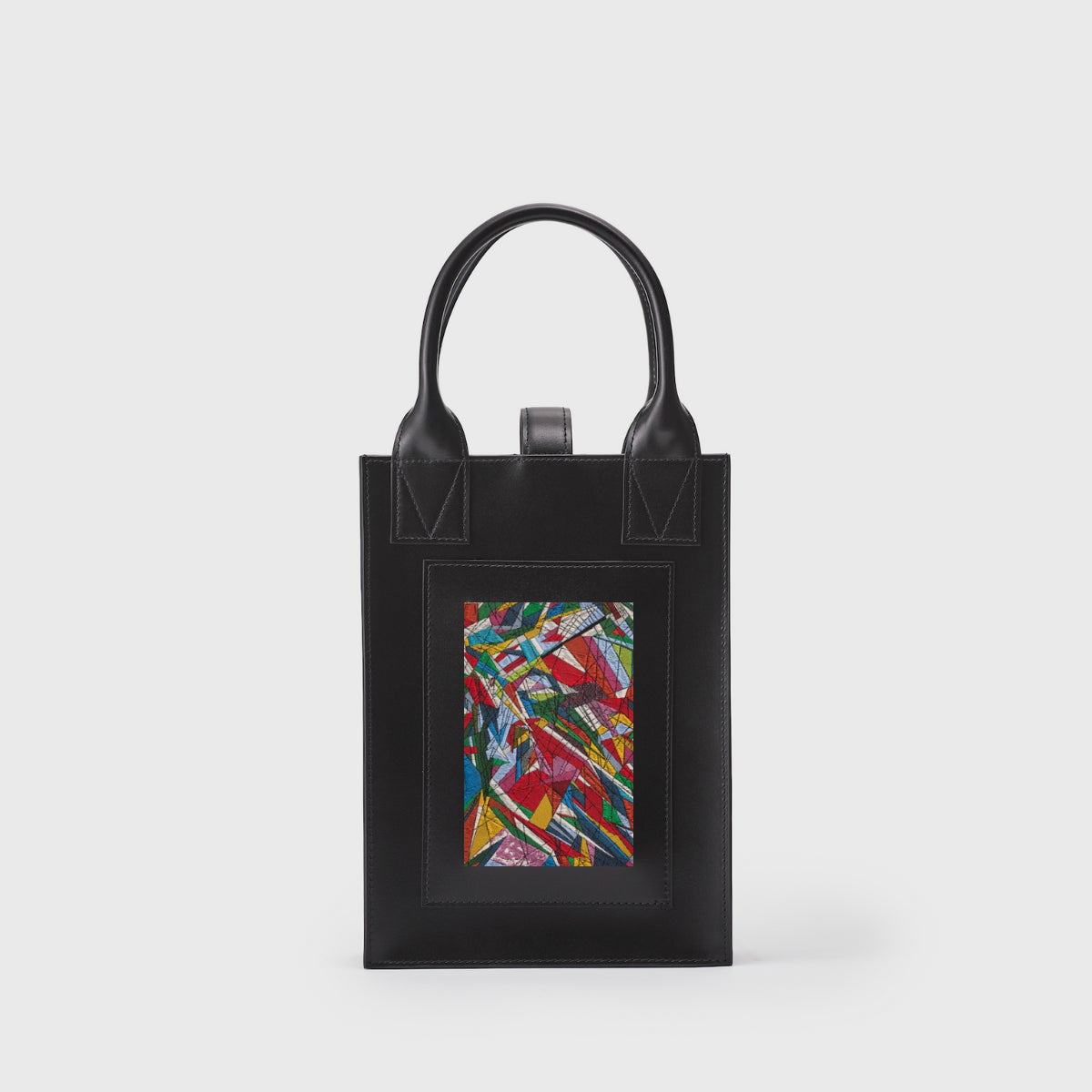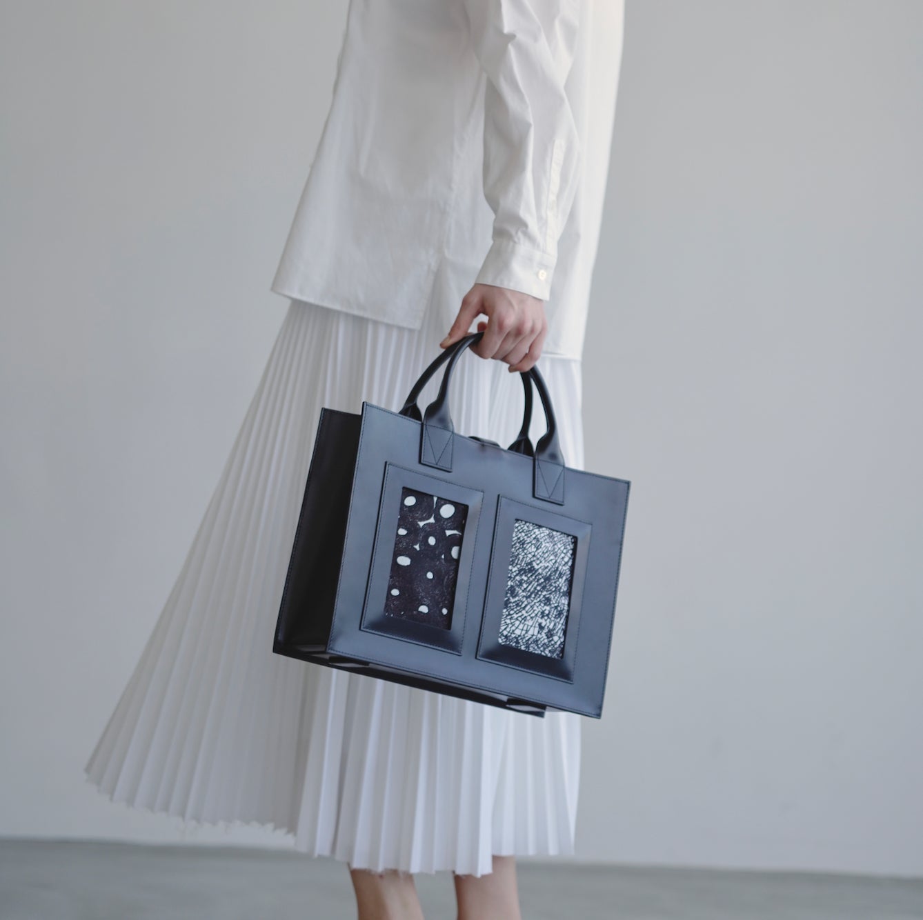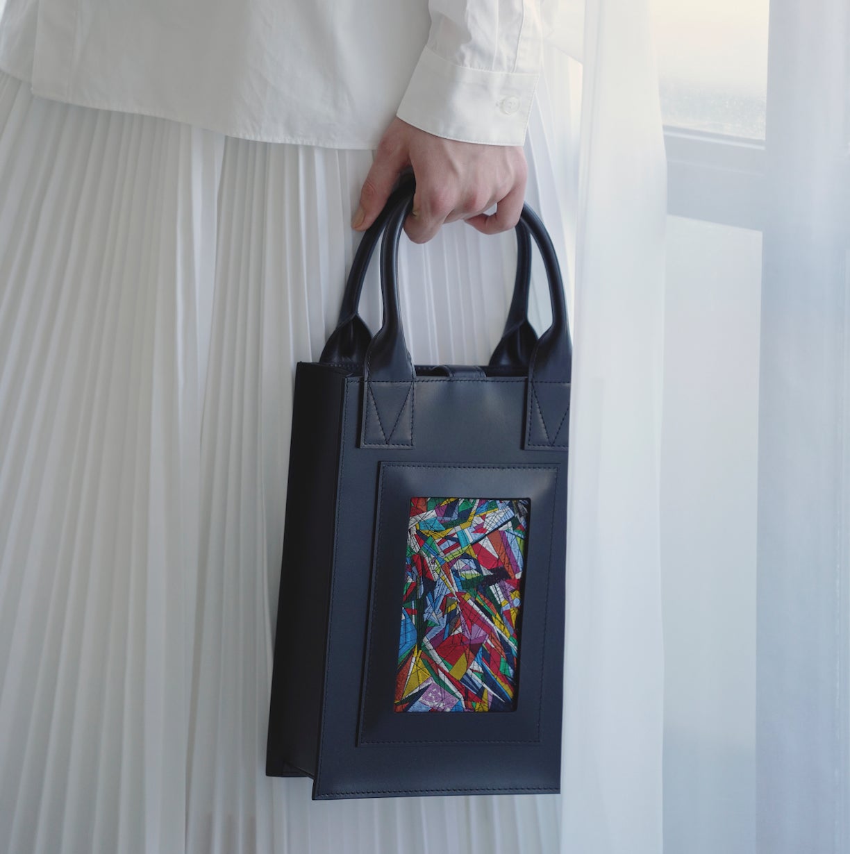 持つ人が「アートを運ぶ装置」となるバッグは、自分自身がキュレーターとなって、シルク織りのアートピースを自由に入れ替えることができます。最高品質の牛皮を使用し、素材選定から裁断、縫製、検品出荷にいたるまで一貫して国内で製造されています。アートピース1枚付き(アートは7種類展開。お好きなアートが付属された商品をお選びください)。