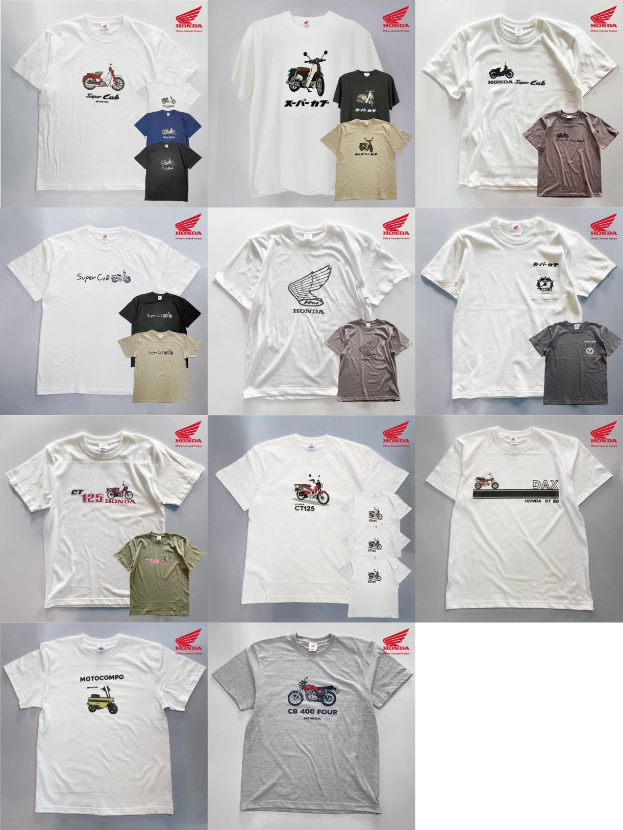 コレクションの中でも特に人気のある今期新作の「ホンダ レトロウイング」やネコがカブの上でくつろいでいるゆるいイラストの「CUB & CAT」も展開しております。ぜひこの機会に足をお運びください。