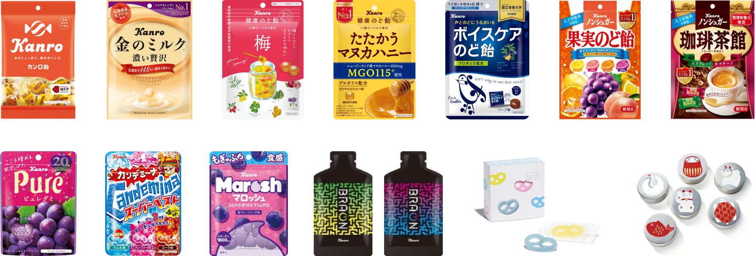 当社は創業から百余年、社名になっている「カンロ飴」を始め、ミルクフレーバーキャンディ市場売上No.1ブランド※「金のミルク」、菓子食品業界で初ののど飴となる「健康のど飴」、大人の女性に向けたグミ市場を創り上げた「ピュレグミ」など、常に消費者の皆様から愛され続ける商品を創り続けてまいりました。2012年からは直営店「ヒトツブカンロ」を運営し、「ヒトからヒトへ つながる ヒトツブ」をコンセプトにキャンディの魅力を発信しています。