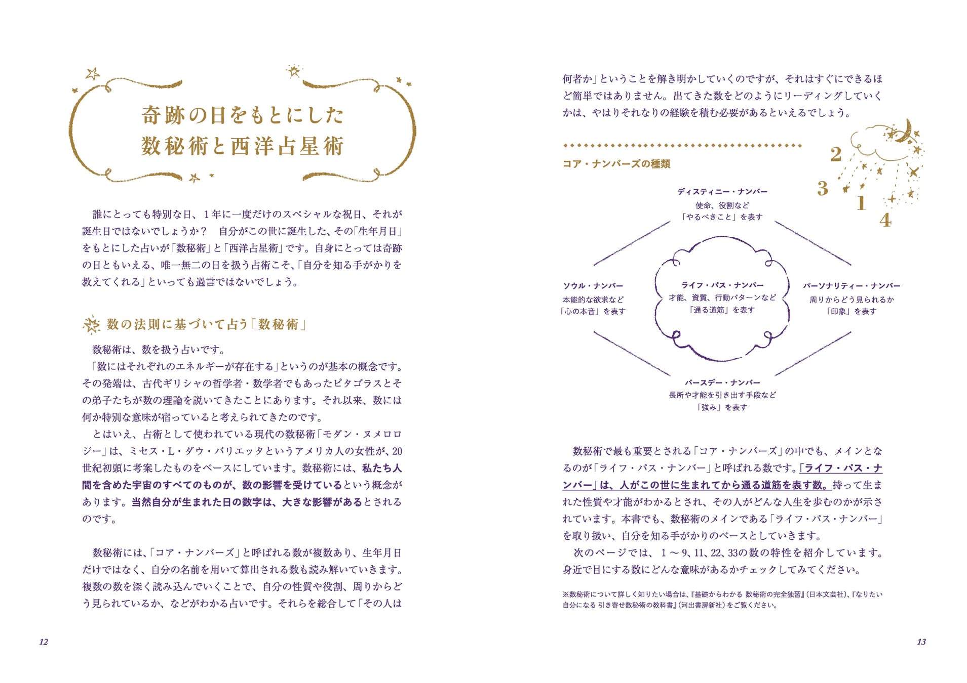 本書で扱う共通点は、私たち一人ひとりにとって奇跡の日ともいえる、唯一無二の誕生日。この2つの占術の画期的なかけあわせによって、「自分を知る手がかり」を読み解いてみませんか?