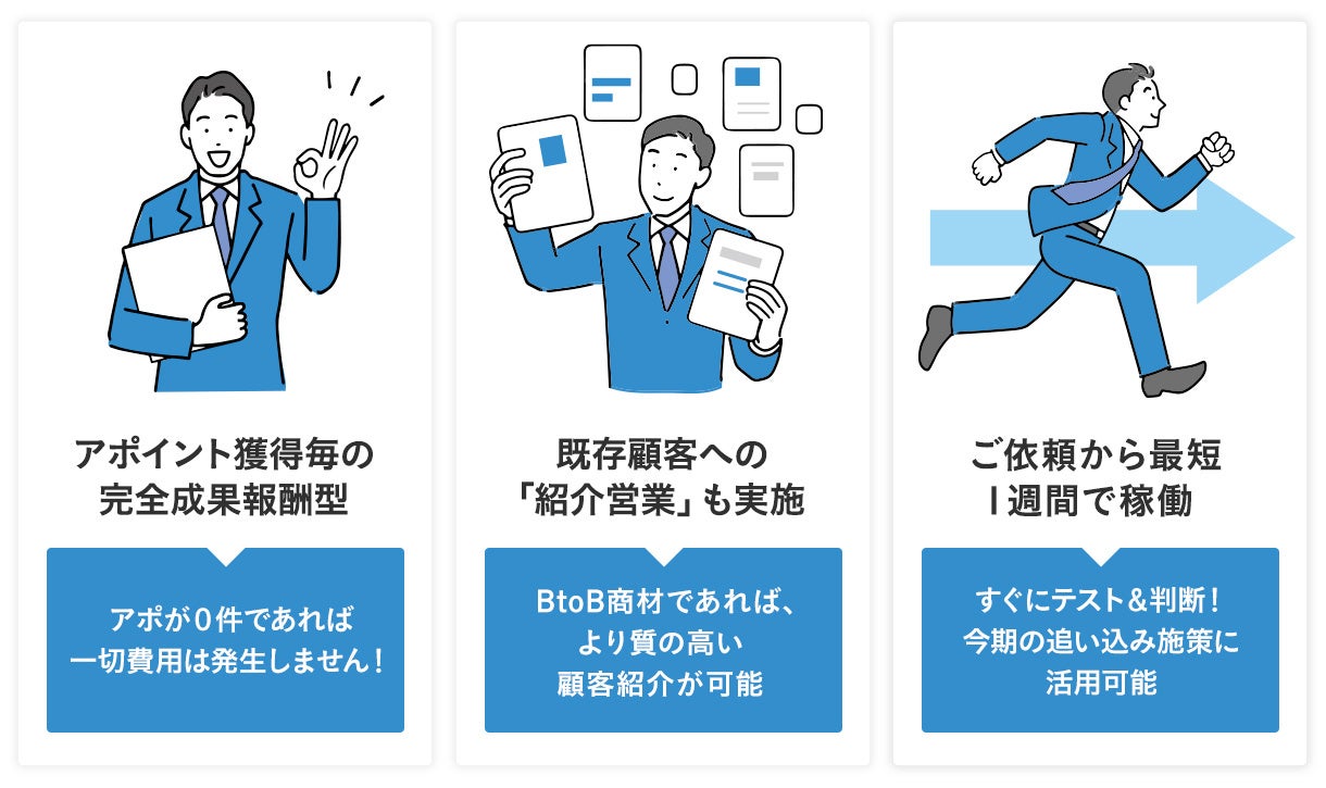 1.アポイント獲得毎の完全成果報酬型 :アポが0件であれば一切費用は発生しません!