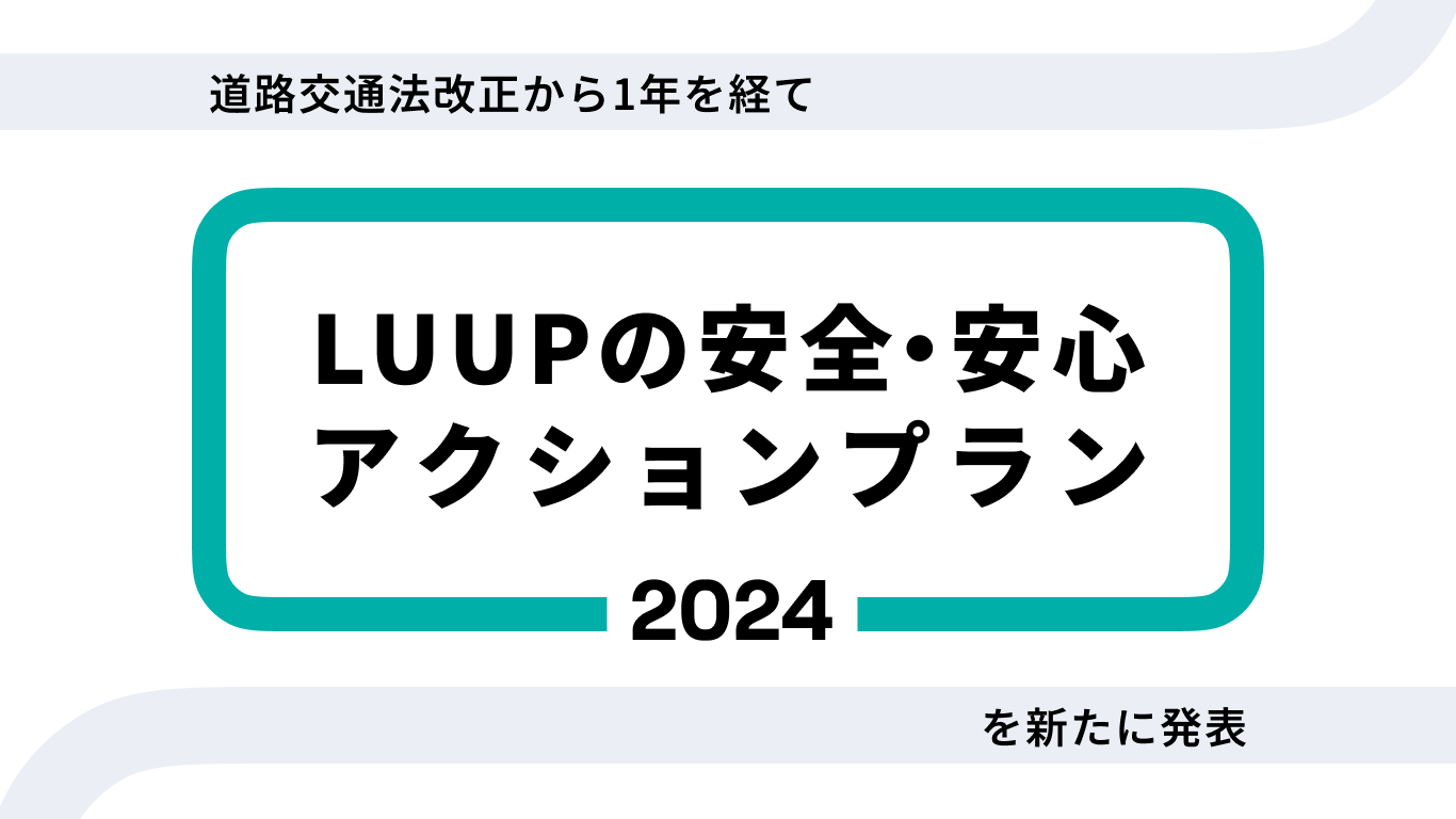 新しい交通ルールが適用されてから1年が経過する今、改めてLUUPの安全・安心なご利用に向けた対策を強化するべく、「LUUPの安全・安心アクションプラン2024」と銘打ち、取り組みを開始します。