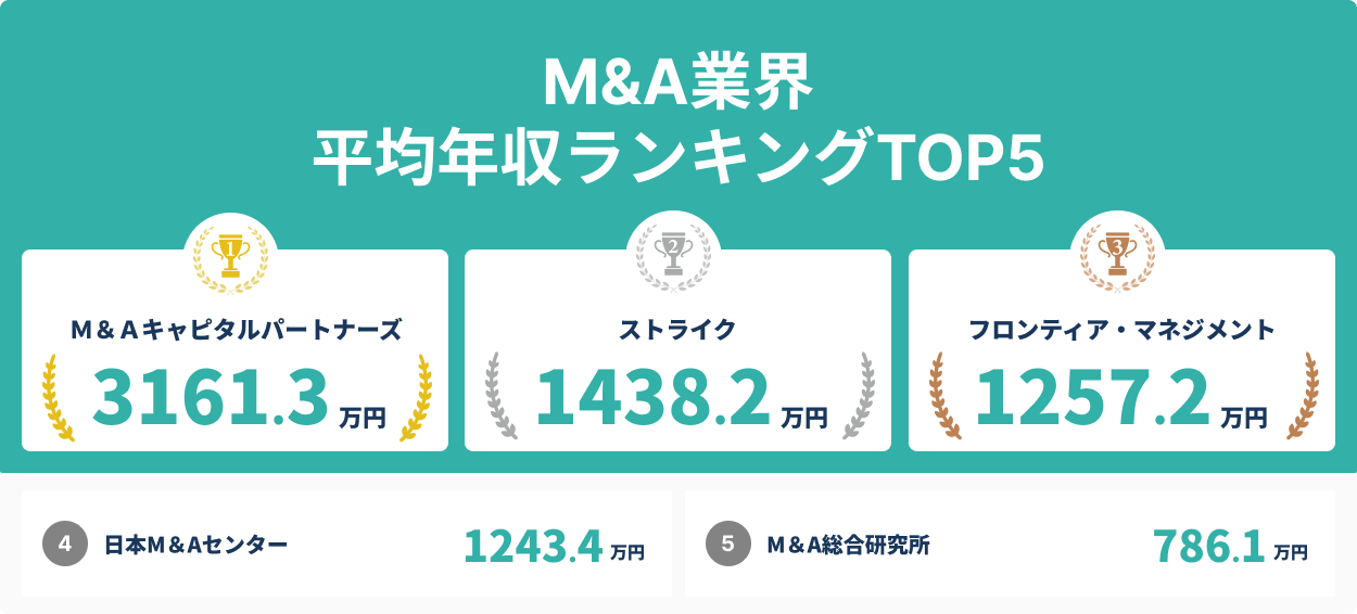 M&A業界平均年収ランキングTOP5について