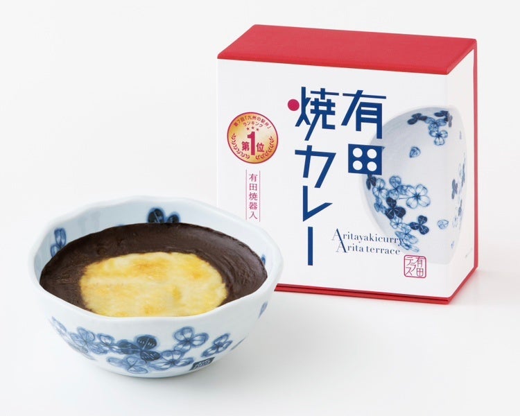 華やかなクローバー柄の器が魅力!数十種類のスパイスを使ったカレールー、佐賀県産牛肉や佐賀県産米、有田の美味しい水など素材にこだわり、じっくりと煮込んだ焼きカレーです。