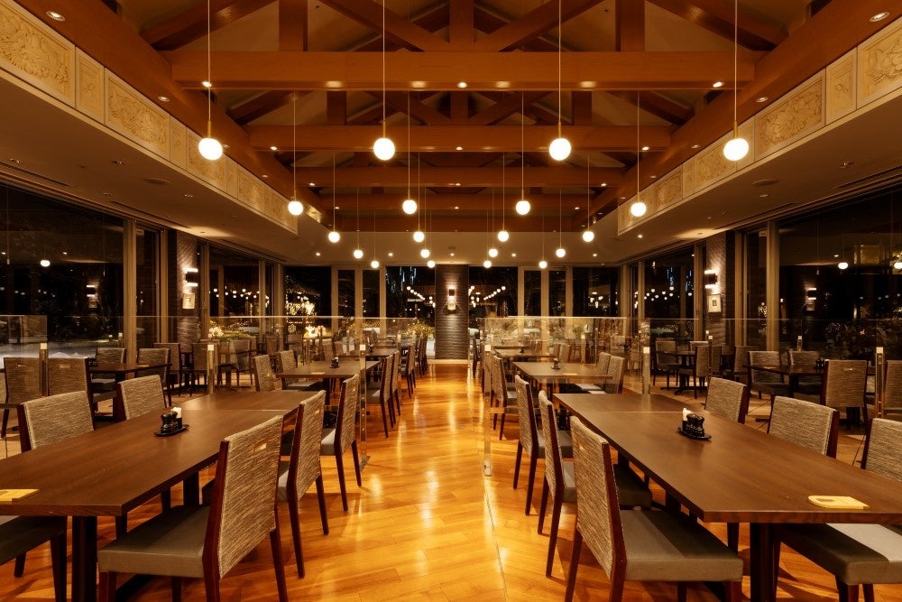 - リニューアルしたレストラン「彩」は、白樺の木に囲まれた明るい店内で「信州の恵み」を提供します