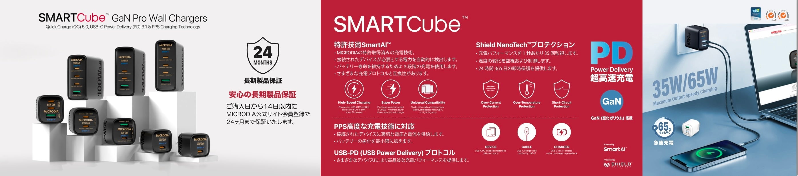 MICRODIA SmartCube Nano 30は、コンパクトなサイズで高速充電を実現し、安全性に優れたガジウム窒化物(GaN)ウォールチャージャーです。携帯性と高性能を兼ね備え、デバイスの充電体験を向上させます。