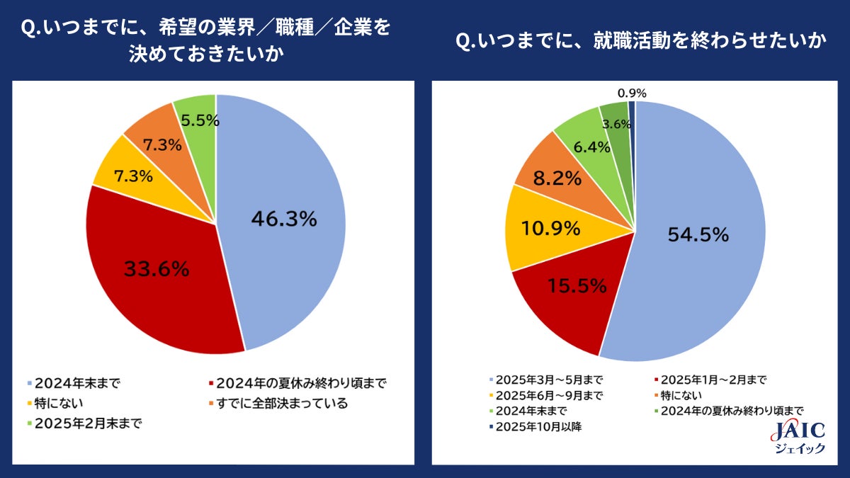 過半数が、2025年3月~5月までに就職活動を終わらせたい