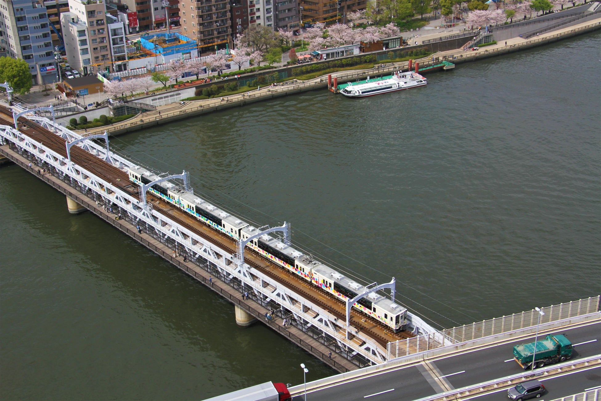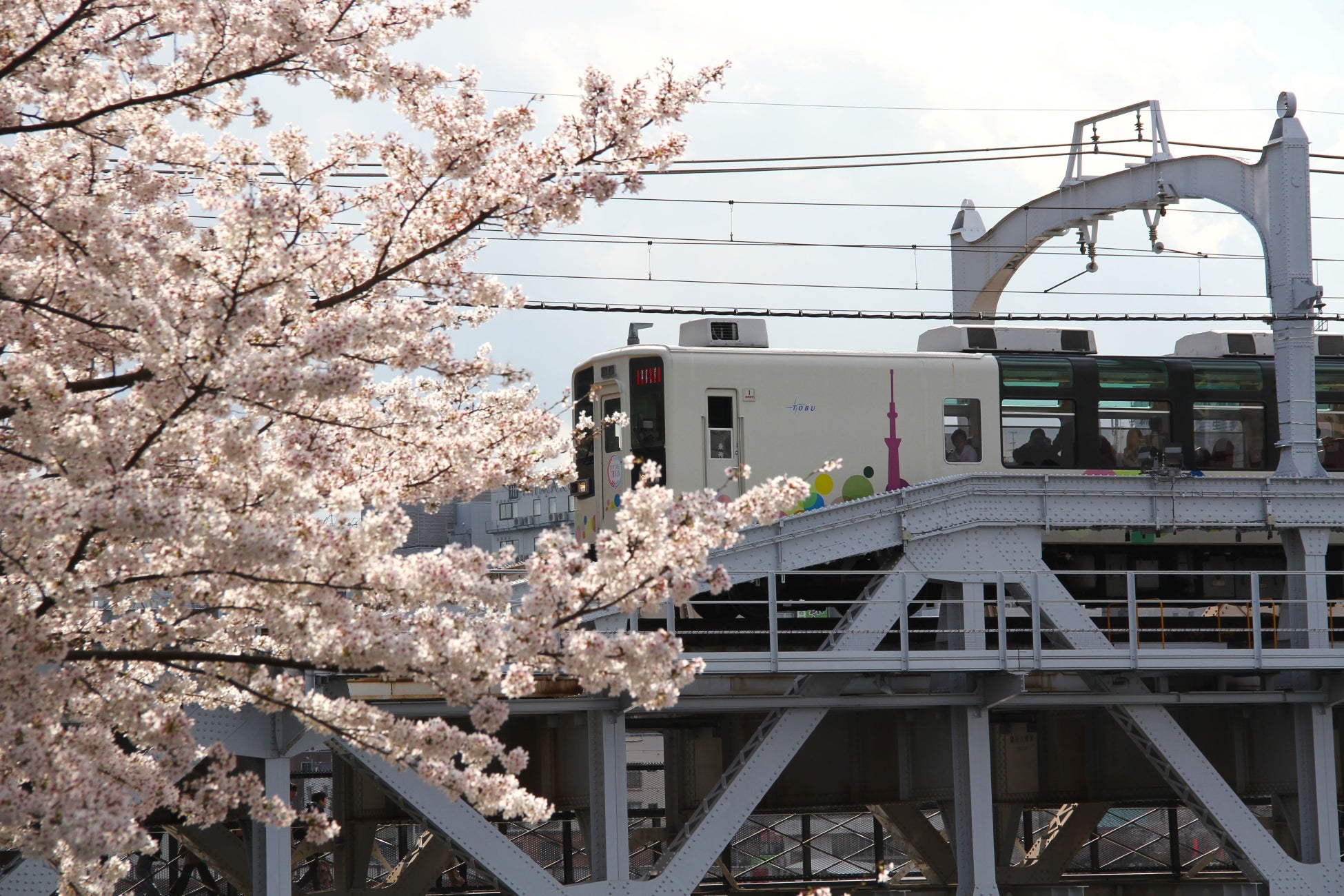 東武鉄道では、隅田川沿いに咲く満開の桜を隅田川橋梁から観賞していただくため、浅草駅~とうきょう スカイツリー駅間でスカイツリートレインによる臨時列車「サクラトレイン」を運転しておりますが、桜の 開花状況を鑑み、4月3日(水)から7日(日)までの5日間を延長運転します。