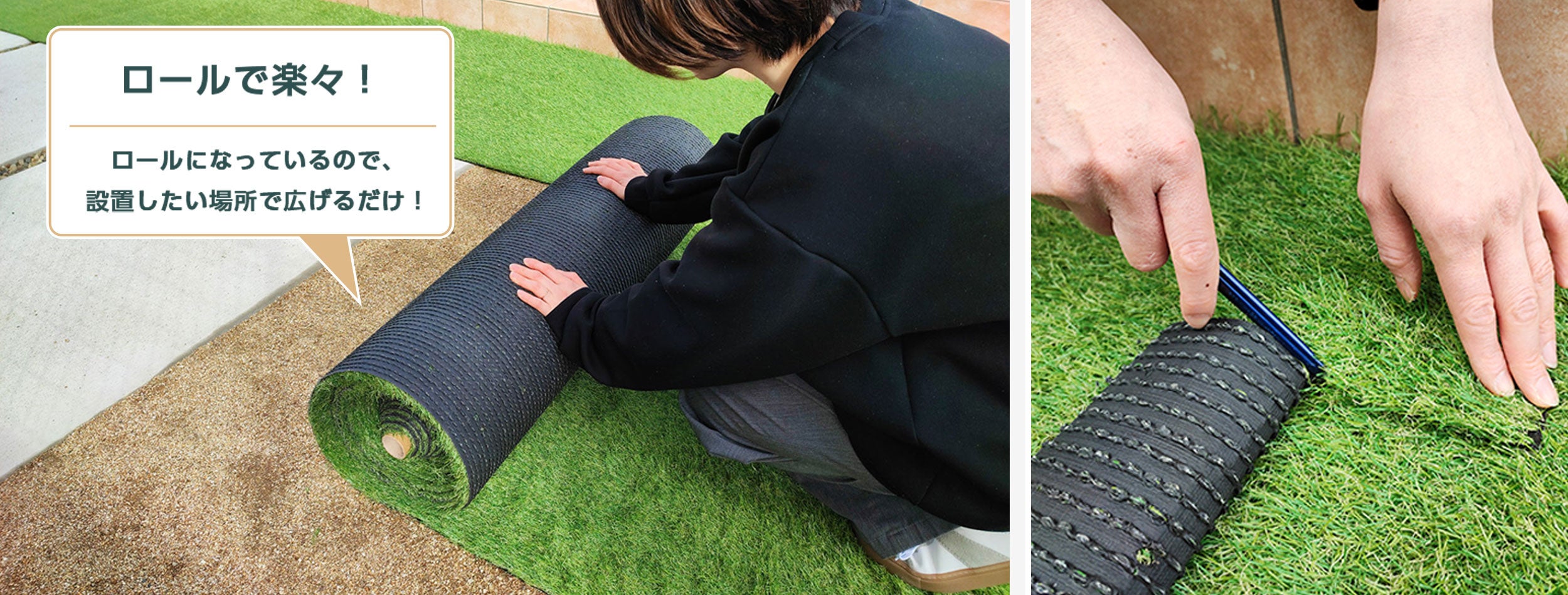 待望の「1m×1m」サイズが加わったことで、大きな庭には「1×10m」を、玄関先やテラスの隙間には「1m×1m」をといった、無駄のない組み合わせが可能になりました。