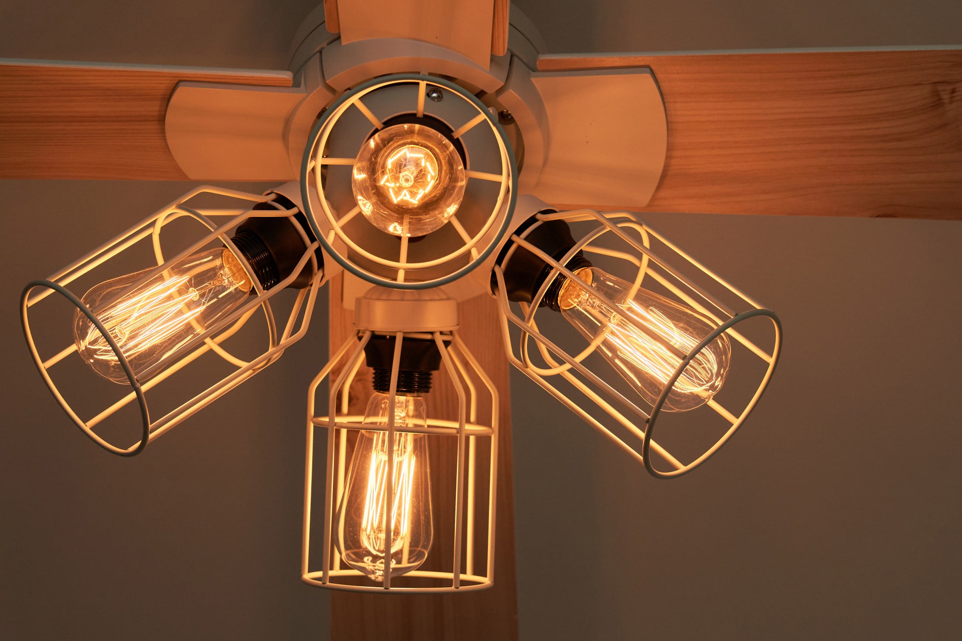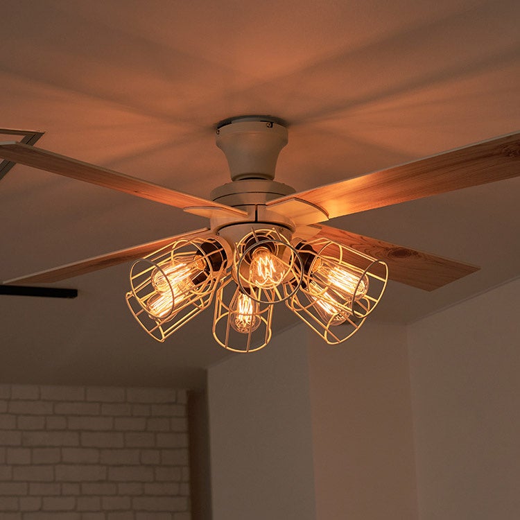 ファンの優しい風に加え、オレンジ色に光るエジソンバルブのノスタルジックな光も楽しめます。