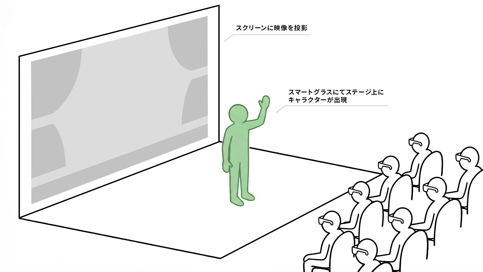 従来のスクリーン上映とは異なり、観客自身の視界を舞台とすることで、作品世界に入り込むような没入型ライブ演出を実現しました。