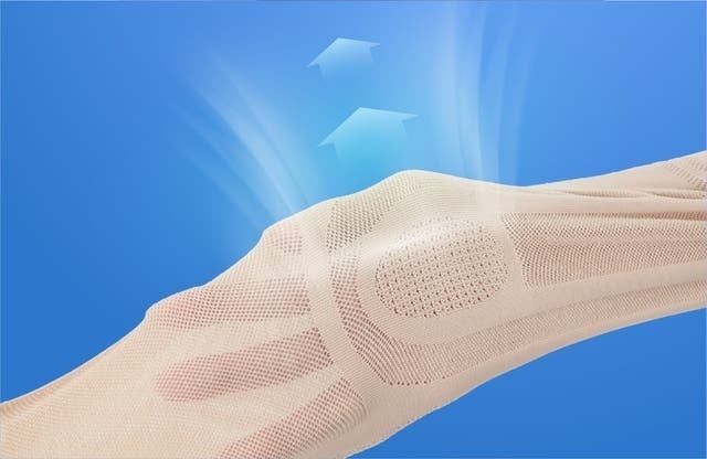 厚さ約1mmの極薄タイプで、各部に大小のメッシュを配置し、伸縮性と通気性を両立させています。そのため、日常使いに最適なひざサポーターです。