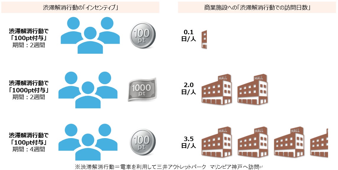 本施策の実施に先立ち、スマートライフパスでは、2025年5月12日~7月11日に、スマートライフパス会員を対象に、スタンプラリーを使用したインセンティブ付与が交通混雑の緩和に資する行動を促すのか、その仕組みの有効性を事前検証しました。検証の結果、参加者に対して一定のインセンティブを付与することで、電車を利用した訪問頻度が向上する効果が見られました。さらに、一度インセンティブを付与すると、その後インセンティブの水準を下げた場合でも、電車を利用した訪問は継続される効果が確認されました。この事前検証の結果から初期段階で適切な動機づけを行うことで、行動の定着につながる効果を確認しています。