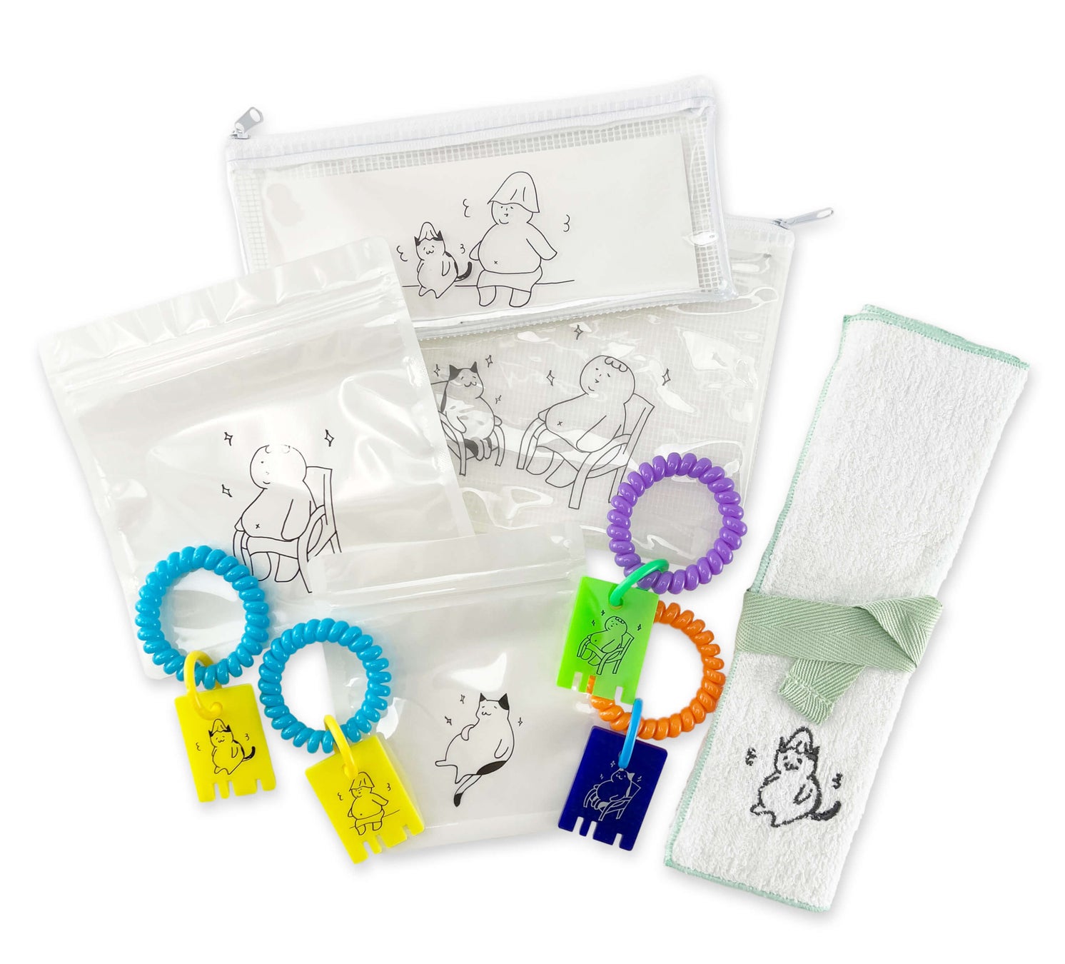 ととのうさんとねこが「ととのう」姿に癒されるロッカーキー風チャームや機能性の高いタオル素材やメッシュのポーチなど、サウナやスパ、銭湯のおともにぜひ取り入れてみてください。