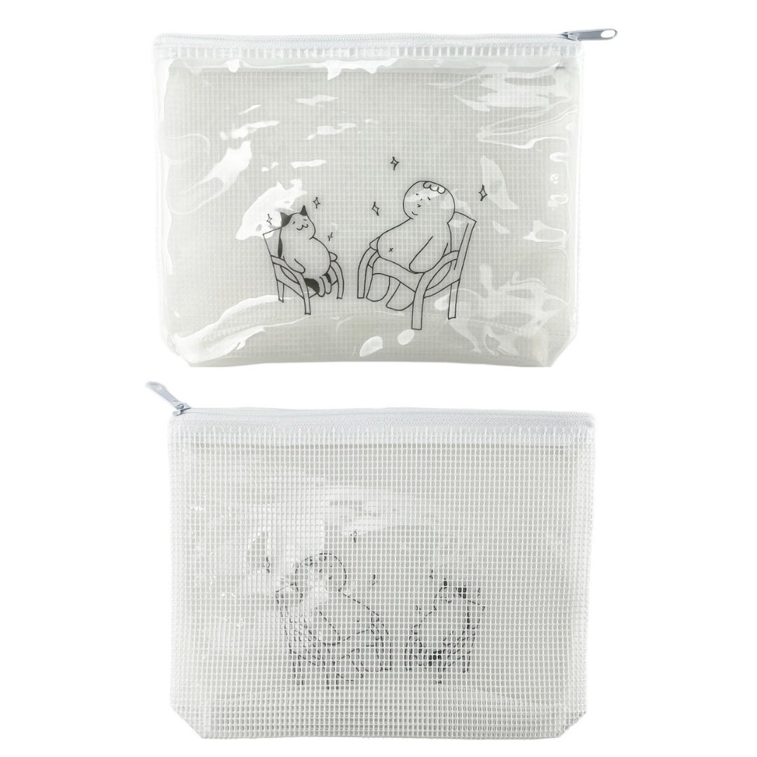 コンパクトな横長サイズのポーチは軽いメッシュ素材で、サウナグッズに限らず、ハブラシやガジェット類をスッキリ収納することもできます。