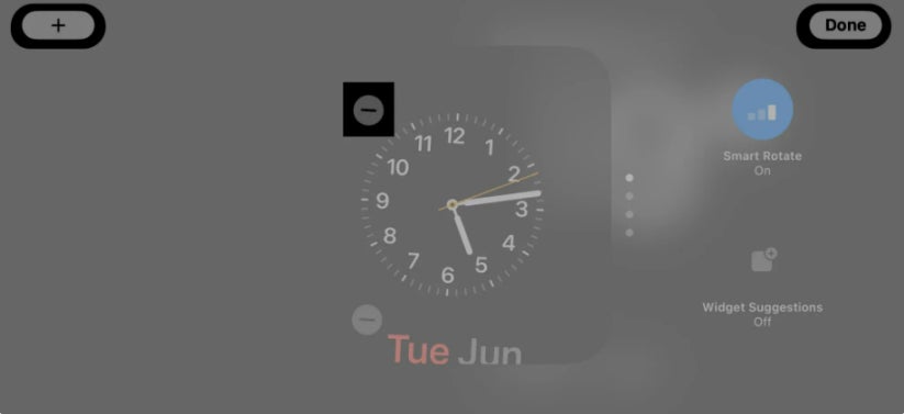 ウィジェットの削除:ウィジェットの左上隅にあるマイナス アイコンをタップします。
