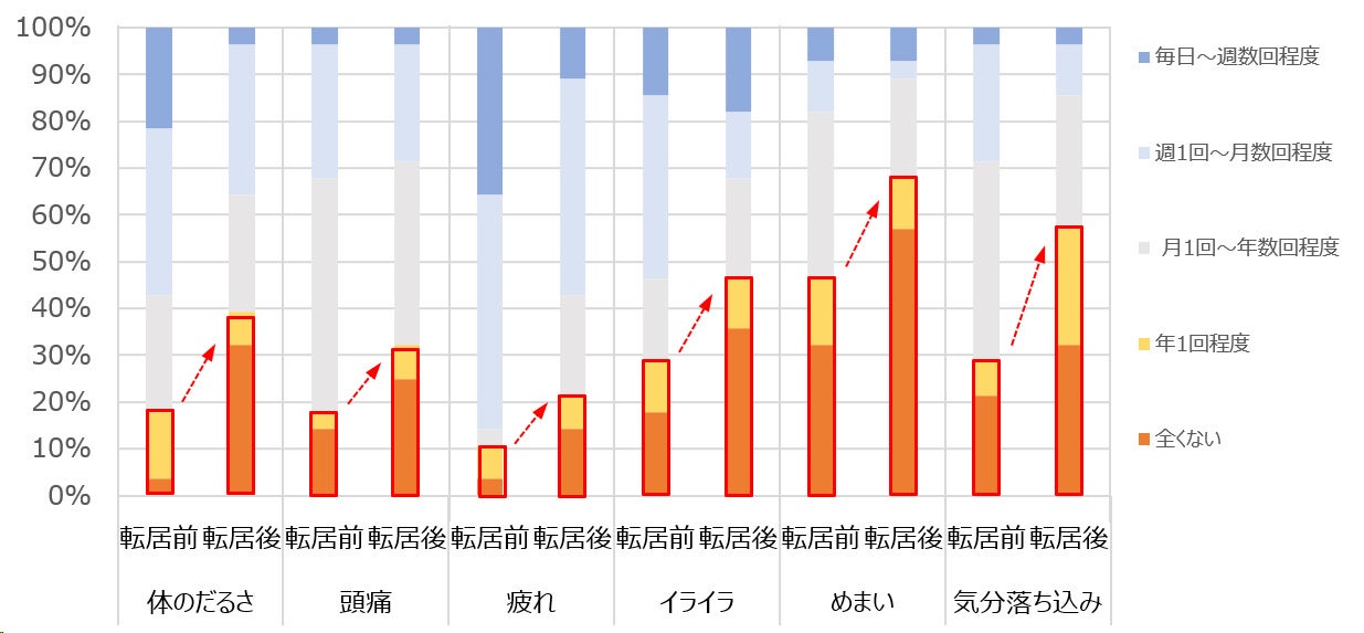 夏季の調査結果では、室温・湿度の低下により、「体のだるさ」「イライラ」の軽減に効果が見られた