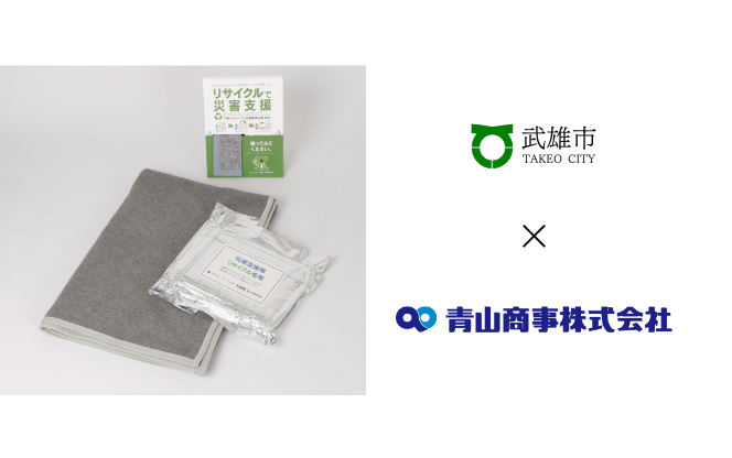 青山商事株式会社(本社:広島県福山市/代表取締役社長:遠藤 泰三)は、佐賀県武雄市と「防災に関する連携協定」を締結し、8月27日(水)に武雄市役所にて締結式を開催します。またこれに際して、同日に防災毛布(災害支援用リサイクル毛布)100枚を寄贈いたします。なお、自治体との防災に関する連携協定の締結は4例目、佐賀県内では初めての取り組みとなります。