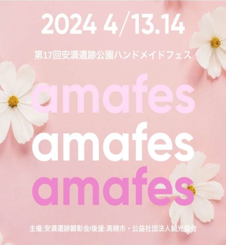 令和6年4月13日(土曜日)、14日(日曜日)に高槻市の安満遺跡公園で、人気のハンドメイド作家らが大集合する「第17回 安満遺跡公園ハンドメイドフェス~あまふぇす~」が開催。雑貨やアクセサリーのほか手作りお菓子など、合計100ブース以上がずらりと出店します。