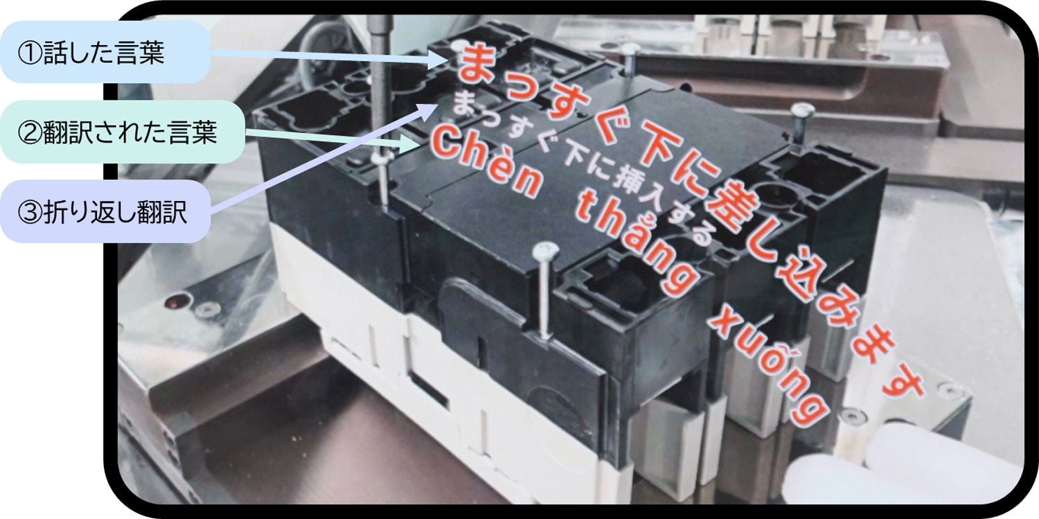 2.「翻訳・折り返し翻訳機能」「翻訳辞書機能」「音声認識辞書機能」により翻訳の精度向上を実現し、生産現場における外国籍労働者の理解度向上に貢献