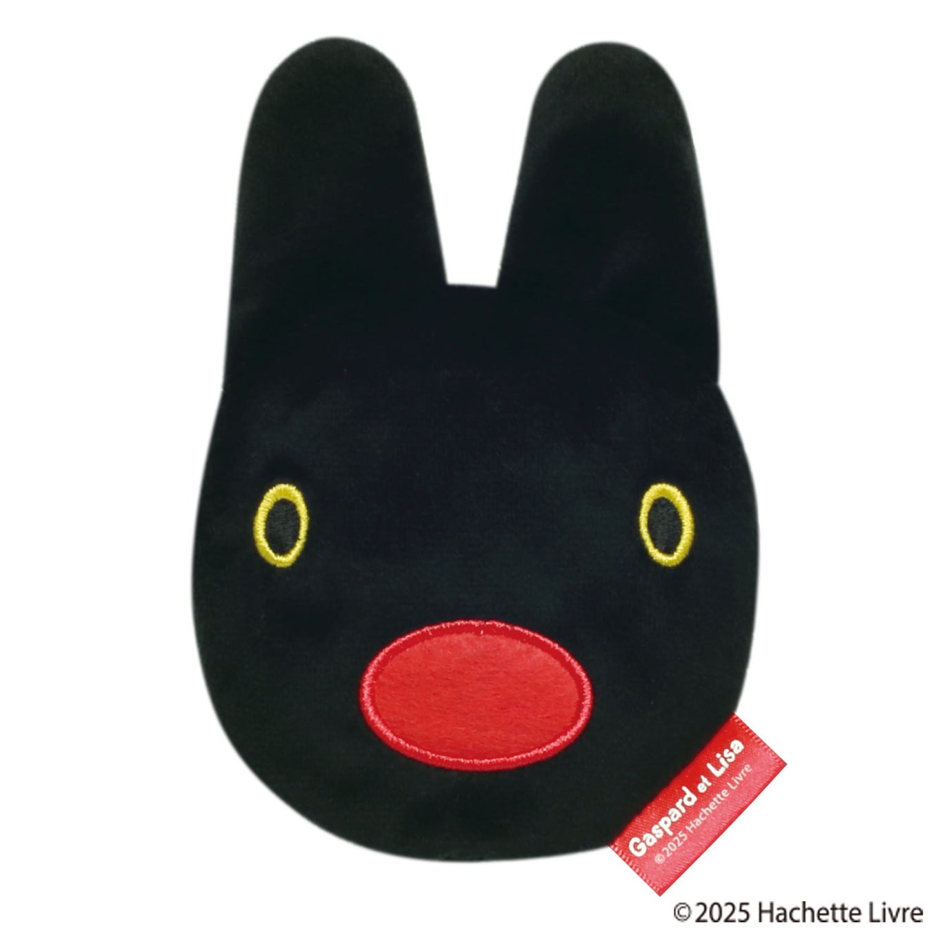 リサとガスパールのお顔型の「フェイスポーチ」は、ふわふわのボア生地を使用しており、愛くるしい一品。