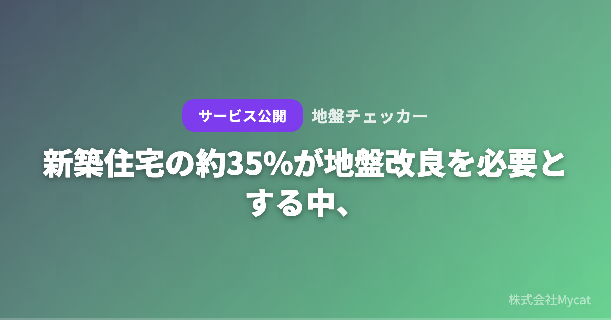 株式会社Mycatは、住所を入力するだけで地盤改良の必要確率と予想費用を無料で診断できるWebサービス「地盤チェッカー」(https://jiban.xyz)を公開した。