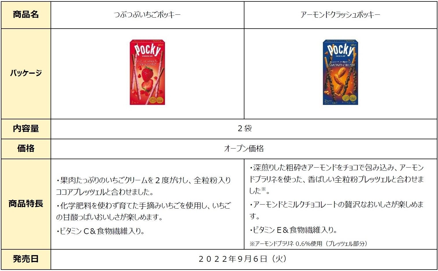 「つぶつぶいちごポッキー」「アーモンドクラッシュポッキー」2品を素材にこだわり、リニューアル発売
