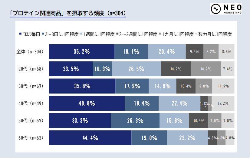 プロテイン関連商品を数カ月に1回以上摂取すると回答した方のうち摂取頻度が「増えた」は約半数プロテインは筋力やダイエットのためだけにあらず肌質や髪質など美容目的で摂取する女性も