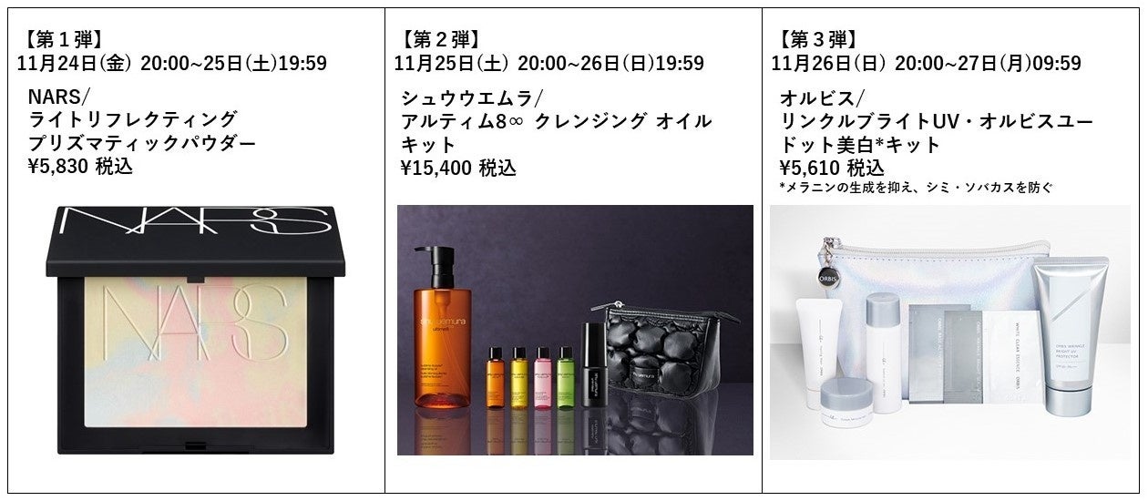 ※最終日のみ20時から14時間限定となります。各商品は、12月1日(金)からの@cosme BEAUTY DAY開催期間中にも数量の一部を先着にて販売いたします。