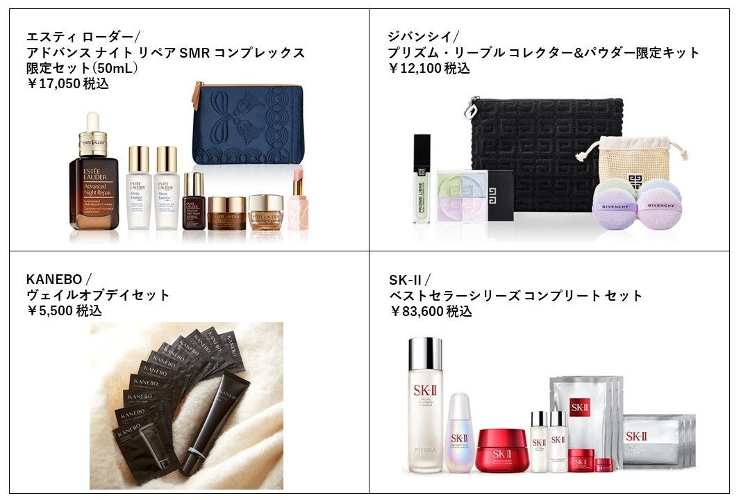 @cosmeベストコスメアワード2022 ベスト日焼け止め 第1位を受賞したKANEBOの「ヴェイル オブ デイ」とサンプルが12個付いた特別なセットや、@cosmeベストコスメアワード2022 ベスト美容液 第3位を受賞したエスティ ローダー「アドバンス ナイト リペア SMR コンプレックス」を含む限定セットなど、ベストコスメアワード受賞商品をお得なセットでお求めいただけます。